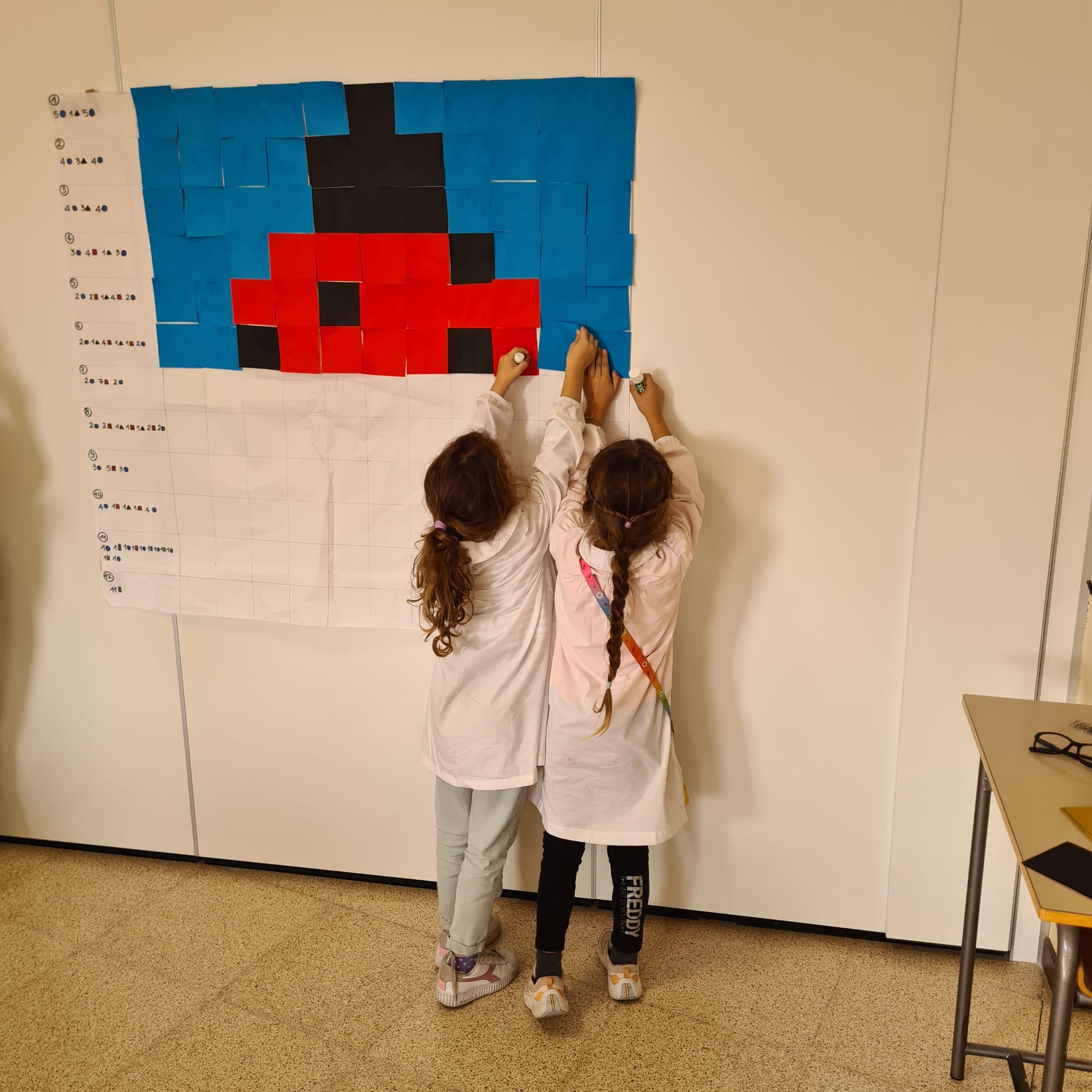 La pixel art è stata una fantastica avventura creativa per la classe prima, che ha imparato a trasformare piccoli quadratini colorati in immagini.