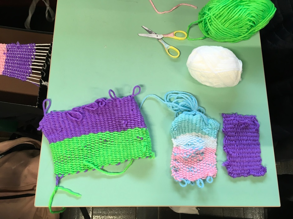 Grazie al telaio artigianale, gli alunni hanno potuto produrre piccole sciarpette, intrecciando pazientemente i fili di ordito e di trama oppure simpatici braccialetti.