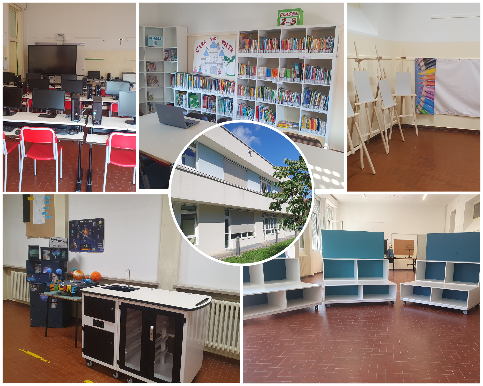 L’edificio principale ospita le aule e diversi laboratori didattici pensati per stimolare la curiosità, promuovere la collaborazione e sviluppare competenze interdisciplinari essenziali per il successo nel mondo di oggi. Accanto a questa struttura si trova un secondo edificio, di costruzione più recente, che accoglie ulteriori classi e spazi dedicati alle attività scolastiche.