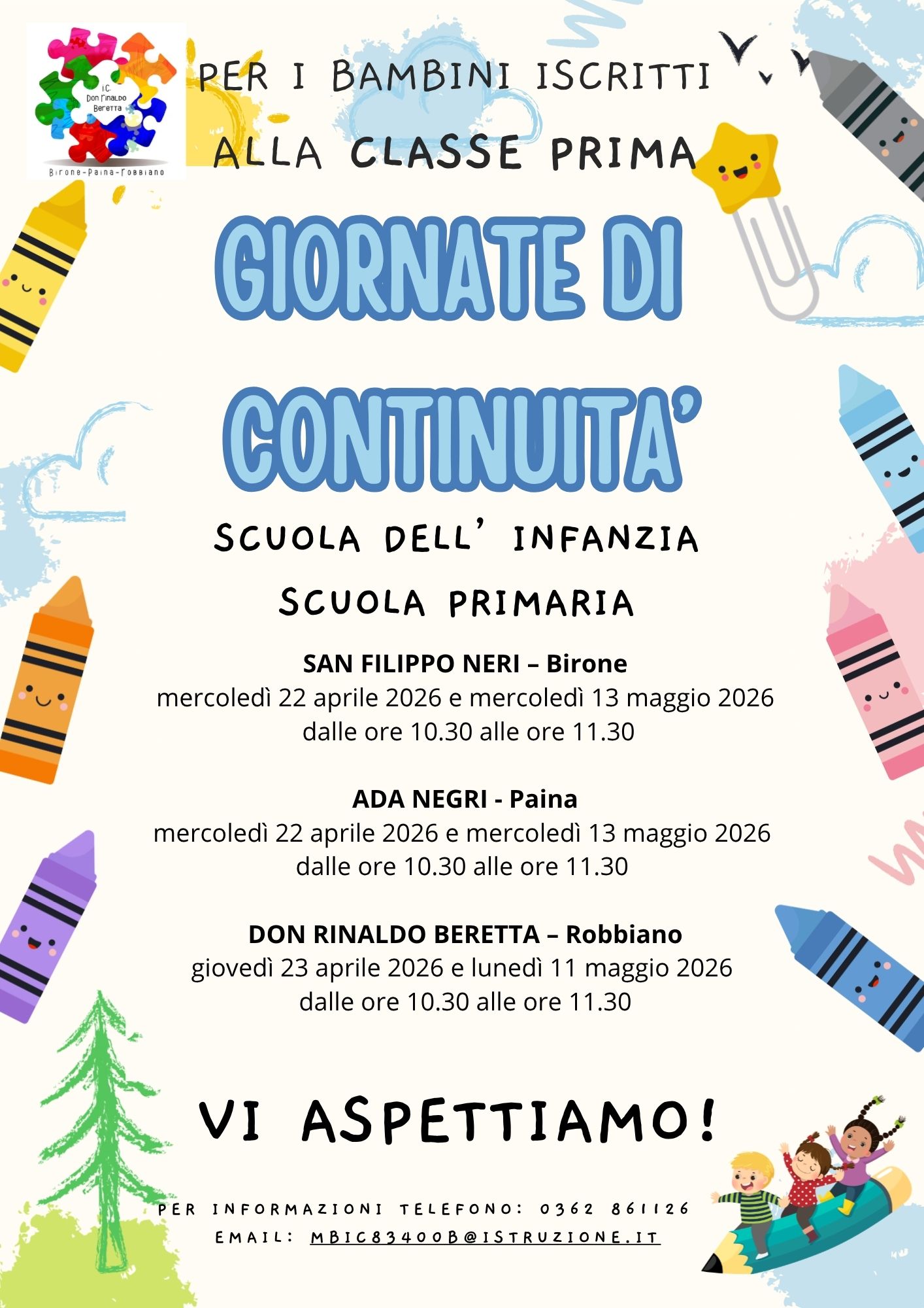 Per informazioni: telefono: 0362 861126 / email: mbic83400b@istruzione.it