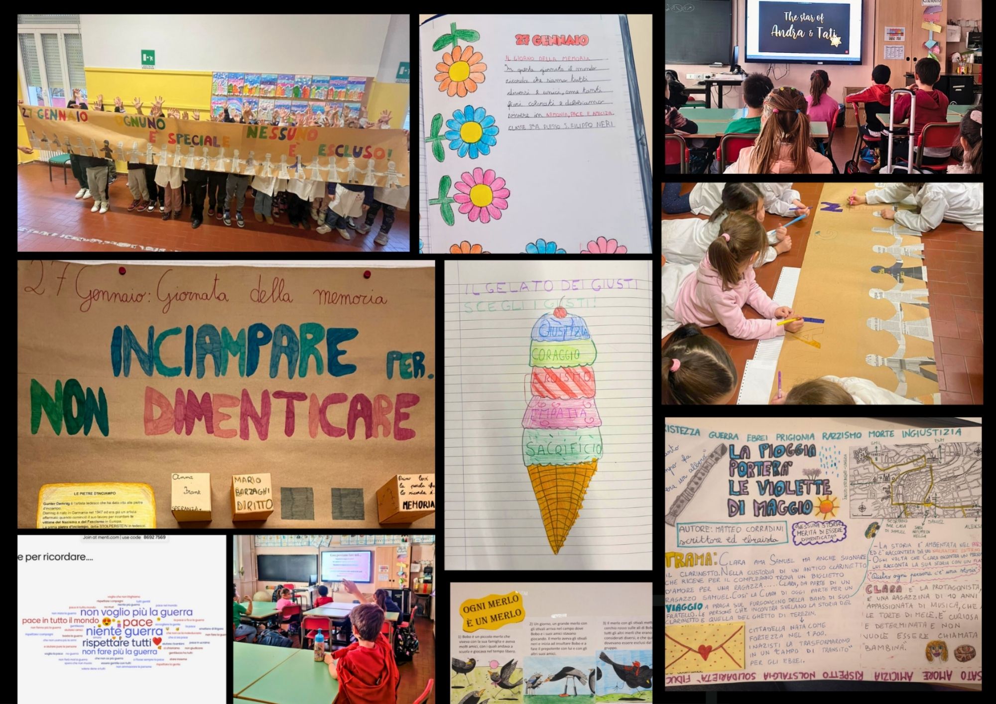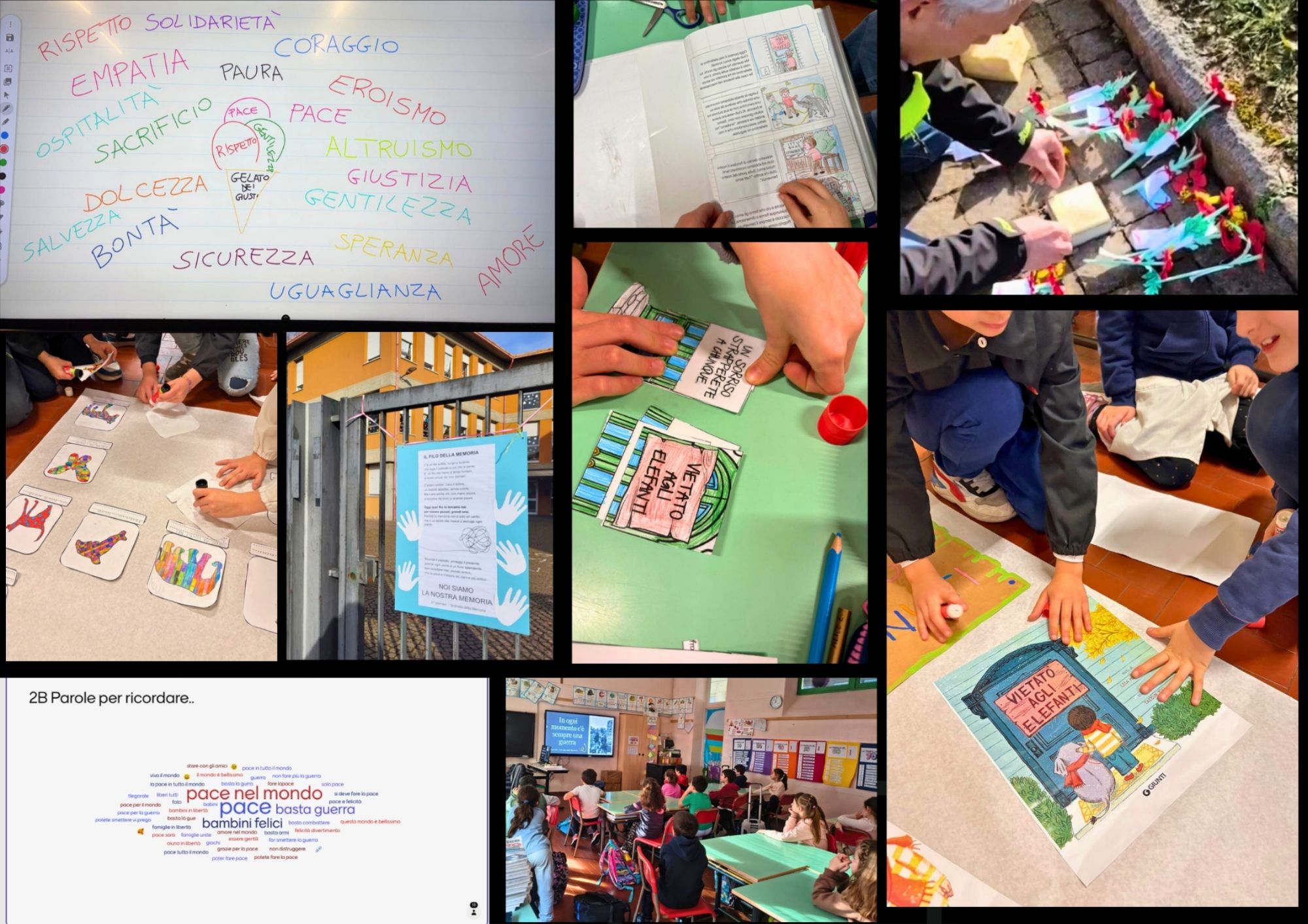 Gli insegnanti, in linea con le Indicazioni Nazionali per il Curricolo e con i principi dell’educazione civica, hanno utilizzato metodologie attive e partecipative: letture di brani tratti da testimonianze dirette, visione di filmati e documentari, laboratori artistici e riflessioni guidate.