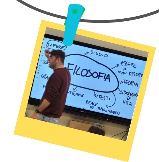 Partendo da un brainstorming collettivo, gli alunni hanno imparato a dare voce alle grandi domande, incontrando i giganti del pensiero antico: da Talete ad Aristotele, passando per il dialogo di Socrate e le idee di Platone.