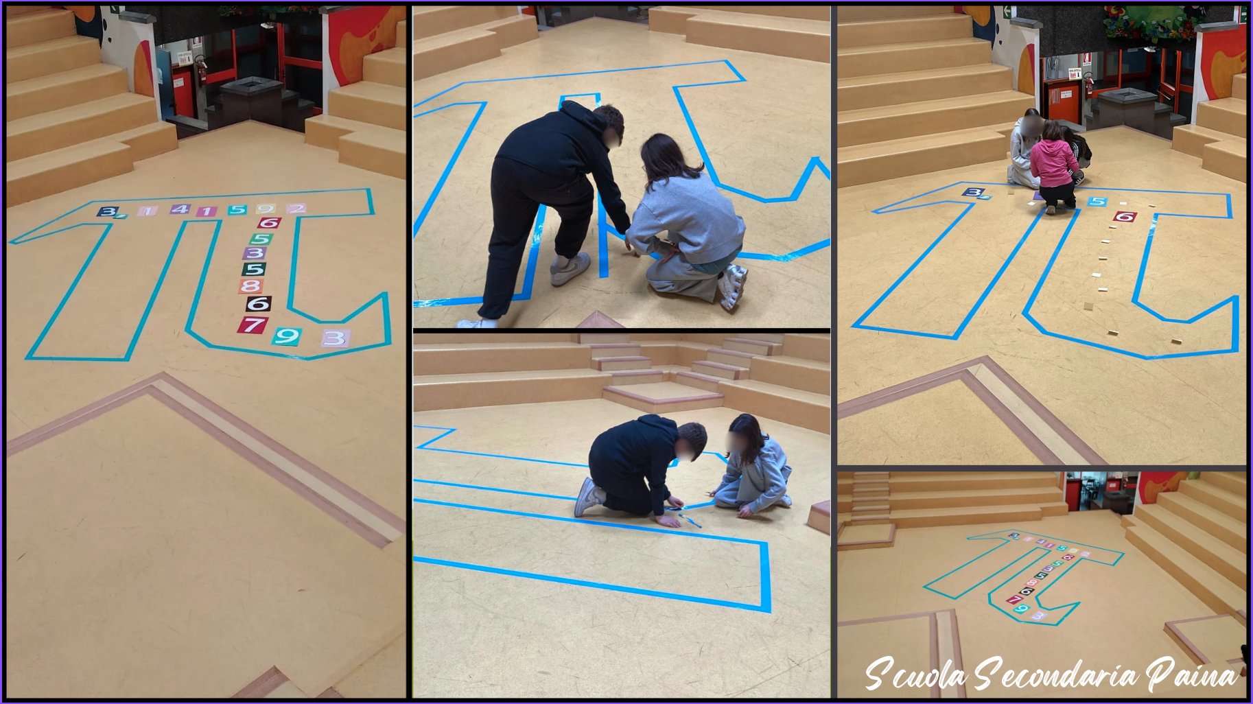 Alla secondaria qualche giorno prima della celebrazione alcuni alunni, armati di nastro adesivo e precisione, hanno tracciato sul pavimento la grande sagoma del celebre simbolo. Lunedì 16 marzo la sfida è entrata nel vivo: ogni classe si è adoperata per risolvere un enigma matematico personalizzato in cui il risultato di ogni prova non era un numero qualunque, ma una delle prime quindici cifre decimali del Pi greco. Una dopo l'altra, le classi hanno riportato i risultati all'interno della sagoma, "componendo" così il Pi greco della nostra scuola.